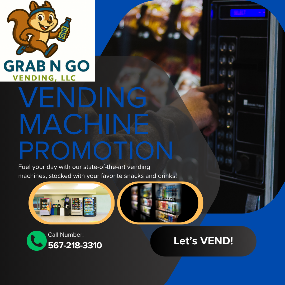 Welcome to Grab N Go Vending, LLC! We bring tasty snacks and drinks right to you with our easy-to-use machines filled with fresh options. We ensure busy people like you always have great choices at your fingertips.